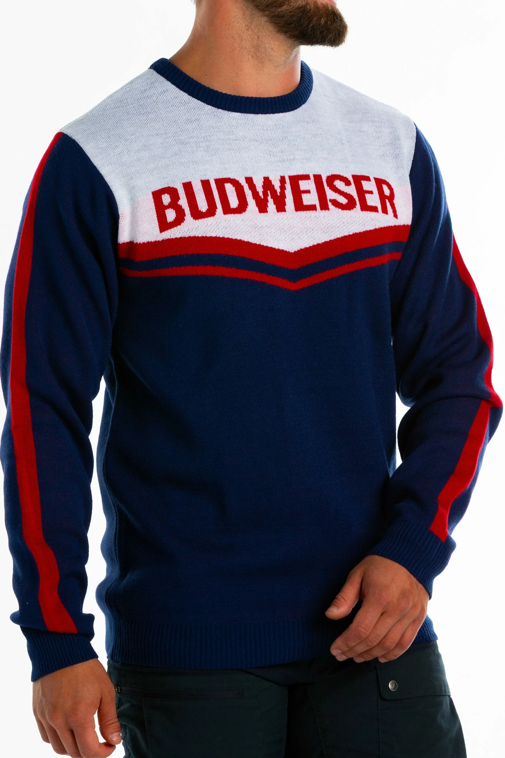 You technically could drink a different beer while wearing this Budweiser vintage inspired sweater, but that would feel kinda weird. Grab a cold Budweiser and slip into this comfy sweater and everything will feel just right.
