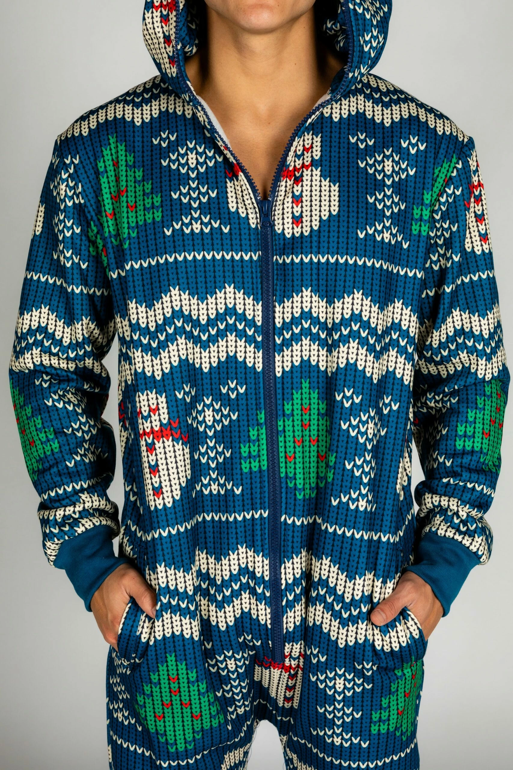 It’s important when considering this blue festive winter onesie to realize that the eggnog drunk is not like any other drunk. It could just be all the heavy cream, but no, there’s something magical to it. It’s warming no matter how cold it’s served and it makes your first cousins look like beautiful strangers. It’s hard to not feel like you’re a part of some Alabama Christmas fairytale. You know, the one that ends in regret and Type 2 diabetes.