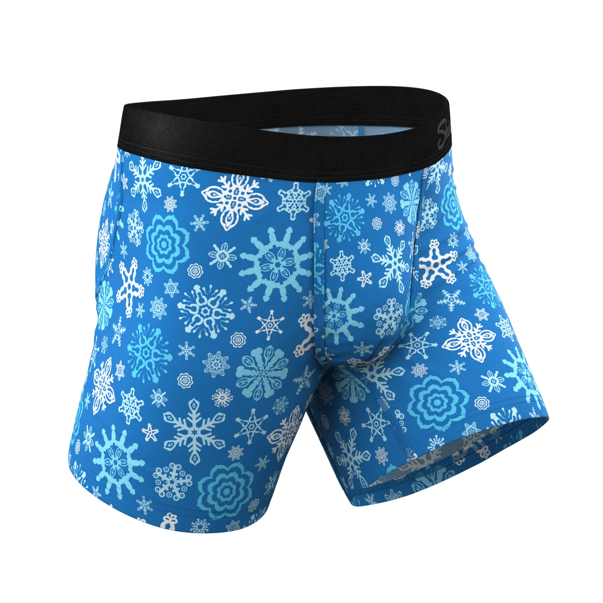 WARNING: The snowflakes here are more phallic than they appear. But that’s not all. Expose these knob-flakes to bright light, then bring them into a dark room and watch the snowflakes on this pair of Ball Hammock® underwear glow.