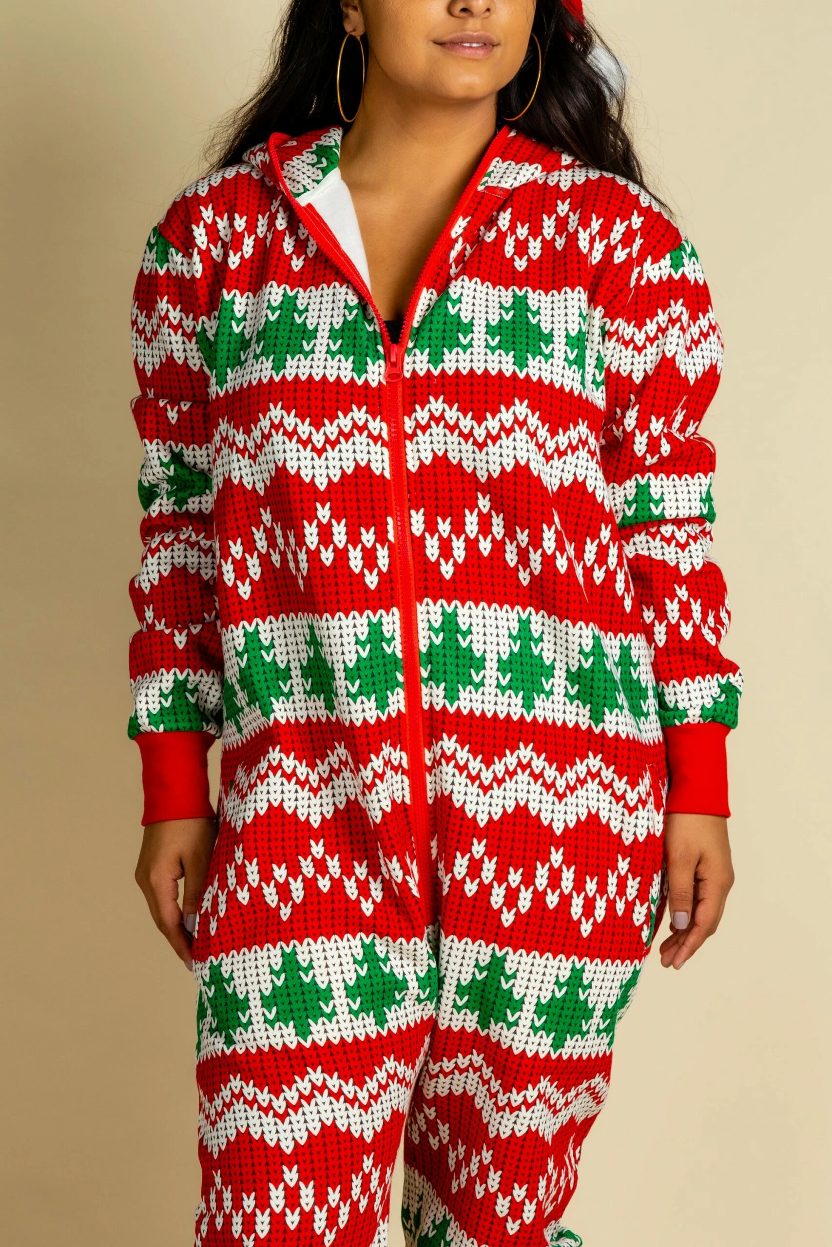 Screw the ugly sweater party, this year is all about the undeniable queen: the Christmas PJ’s. Why would you choose to wear a hand-me-down mothball sweater when you could show up to the party in complete comfort in this unisex big zip onesie? Get ready to drop to your knees for peppermint patty shots with sweet candy cane chasers. This classic red and green knit print onesie is the newest life of the party.