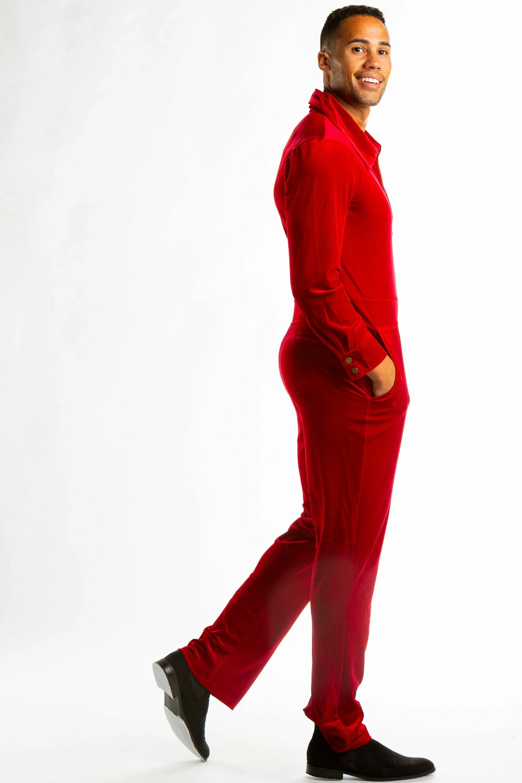 There’s something about red velvet that is undeniably exceptional. Example one, you’ve got the legendary red velvet cake. My personal favorite, although German chocolate cake takes a close second place. Example number two, you’ve got the most famous carpet of all. The red carpet. There may only be two examples of pristine velveteen as of the time of this writing… but with your unending trust and modeling abilities, this Red Velvet Flight suit might just be the third.